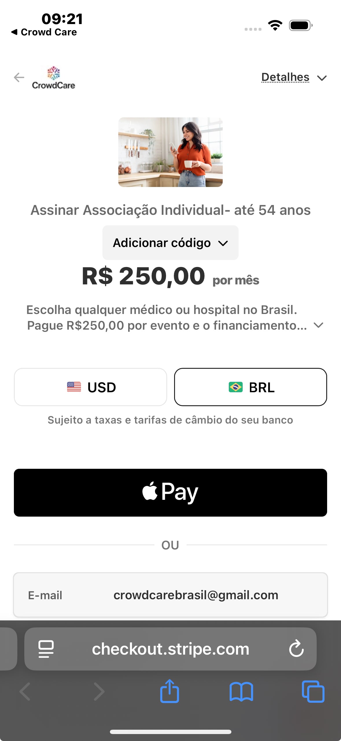 Na tela de checkout, insira seus dados de pagamento.
